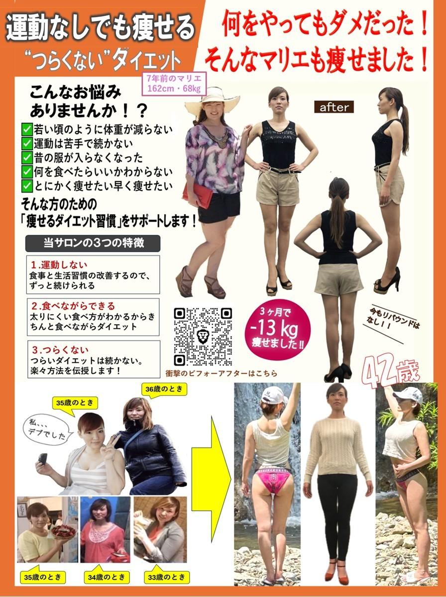 食事療法と栄養素療法を組み合わせ、貴方に合ったダイエット指導をさせていただきます。また、体質改善も行いますのでリバウンドしにくいカラダになります。アフターフォローも万全ですのでご安心下さい。