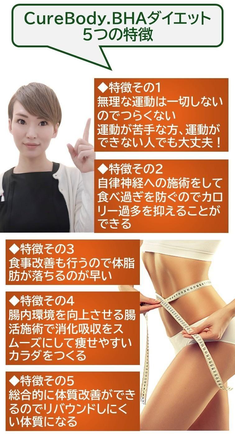 きちんと正しく食べながら、また、食欲は抑えながら進めていきます。食事指導もプランに含まれていますので食生活の改善ができます。その結果体重が戻りにくいです。