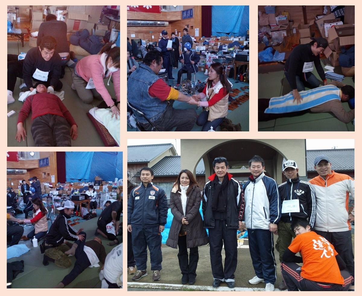 全国から柔道整復師の先生方、治療家、施術家、セラピストの方々が被災地でのいやし隊の活動支援に来てくれました。